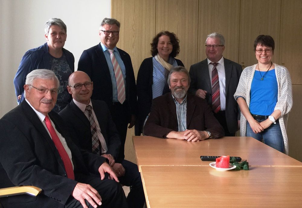 Foto: Die Mitglieder der SPD-Kreistagsfraktion mit der Schulleiterin des Kompetenzzentrums für Gesundheitsberufe, Monika Wagner (l.)