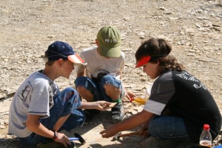 Die Kinder waren beeindruckt von diesen Informationen, ist es doch kaum vorstellbar, dass vor langer Zeit dort einmal tatsächlich ein Meer gewesen ist. Zusammen mit den Betreuern Karl Pollhammer, Ludwig Fischer, Christa und Bruno Helgert machten sie sich auf den Weg zur „Schatzsuche“ und begannen sogleich damit, größere Platten mit Hammern, Meißeln und Schaufeln zu bearbeiten und Schicht für Schicht zu teilen. Jeder Fund wurde begeistert in den mitgebrachten Taschen und Eimern verstaut und Karl Pollhammer erläuterte mit einer Engelsgeduld jeden Fund.