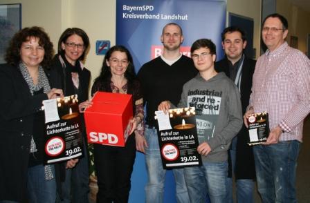 Die SPD in Stadt und Landkreis Landshut unterstützt deshalb auch die Arbeit des „Runden Tisches gegen Rechts“ und die von ihm initiierte Lichterkette in Landshut, so Anja König. Am 19. Februar findet ab 17.30 Uhr eine Lichterkette statt, bei der Michael Lerchenberg als Redner auftritt. Die SPD-Ortsvereine im Landkreis Landshut beteiligen sich sowohl an der Veranstaltung als auch an der Verteilung der Flyer und Plakate. Wer schweigt und wegsieht, arbeitet hingegen den Rechtsextremen in die Hände, denn das erleichtert ihnen, ihre ideologischen Machtstrukturen in der Region aufzubauen, fasste es Herbert Lohmeyer zusammen.
