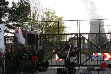 Die SPD hatte am Montag mit dem Landtagsabgeordneten Dr. Linus Förster ebenfalls einen Musiker anstelle eines Redners eingeladen. Dr. Linus Förster, der Mitglied in zwei Bands ist, hatte extra für die Mahnwache in Niederaichbach einen Song getextet, den er sozusagen als Premiere präsentierte. „Tschernobyl – das letzte Signal vor dem Overkill“ entstand 1986 nach der Atomkatastrophe. Diese Zeilen hatte er mit einer aktuellen Botschaft zu Fukushima ergänzt und neu gemixt.