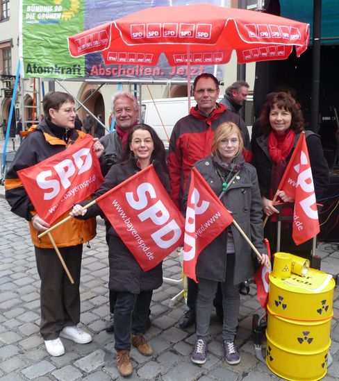 Gemeinsam mit Rudolf Kamm von der Bayern-Allianz, den Machern des Münchner Tollwood-Festivals und „Rodscha aus Kambodscha“ warben sie in einem breiten Bündnis von SPD, Grünen, ödp, Bund Naturschutz und Bürgerinitiativen in Landshut für den Atomausstieg.