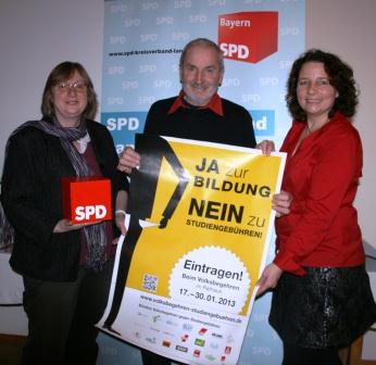 "Es geht um Chancengleichheit und Gerechtigkeit, zentrale Themen der SPD, deshalb unterstützen wir dieses Volksbegehren", so die Kreisvorsitzende der SPD, Ruth Müller aus Pfeffenhausen. Der Zugang zur Bildung, ob nun Hochschule oder Kindergarten, müsse ohne finanzielle Selektion möglich sein. Einig sind sich die SPD-Mitglieder Franz Gumplinger (Rottenburg) und Karin Hagendorn (Hohenthann) aber auch, dass die Gebührenfreiheit in der beruflichen Bildung folgen müsse: Eine Freistellung der Meisterprüfung von Kurs- und Prüfungsgebühren zunächst im Handwerk, dann auch - gemeinsam mit den Arbeitgebern - bei Industrie und Handel oder im Gesundheits- und Pflegesektor. Deshalb müssen auch alle Meisterschüler und ihre Familien für das Volksbegehren sein! Es geht hier nämlich nicht um "Privilegien für Akademiker", sondern um den Grundsatz der kostenfreien Bildung!