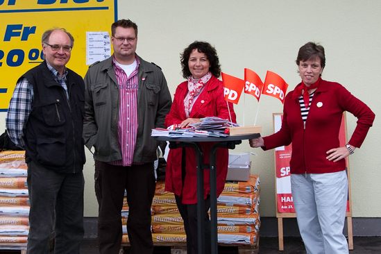 Groß war die Resonanz auf den Infostand der Pfeffenhausener SPD am Samstag vor dem EDEKA-Markt. Bei der Bundestagswahl am kommenden Sonntag geht es um die Ausrichtung der Politik für die nächsten Jahre. Mit einer SPD-geführten Bundesregierung unter Kanzler Frank-Walter Steinmeier wird die SPD für mehr Bildungsgerechtigkeit kämpfen, Mindestlöhne einführen, sich für die echte Gleichstellung von Frauen und Männern einsetzen, Familien unterstützen und am Ausstieg aus der Atomkraft festhalten und den Einsatz Erneuerbare Energien ausbauen. Mit Jürgen Krüger (Mitbegründer der TAZ) hatte die Pfeffenhausener SPD auch einen Mitstreiter aus Berlin an ihrer Seite.