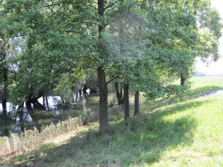 Der Fluss führt noch immer Hochwasser, die Bäume stehen noch im Wasser: