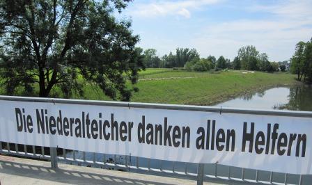 Auch Niederalteich war stark vom Hochwasser betroffen, ganze Siedlungen standen unter Wasser und mussten evakuiert werden. An den Bäumen und Sträuchern, an den Straßenschildern und Zäunen konnte man erkennen, wie hoch das Wasser gestanden ist.