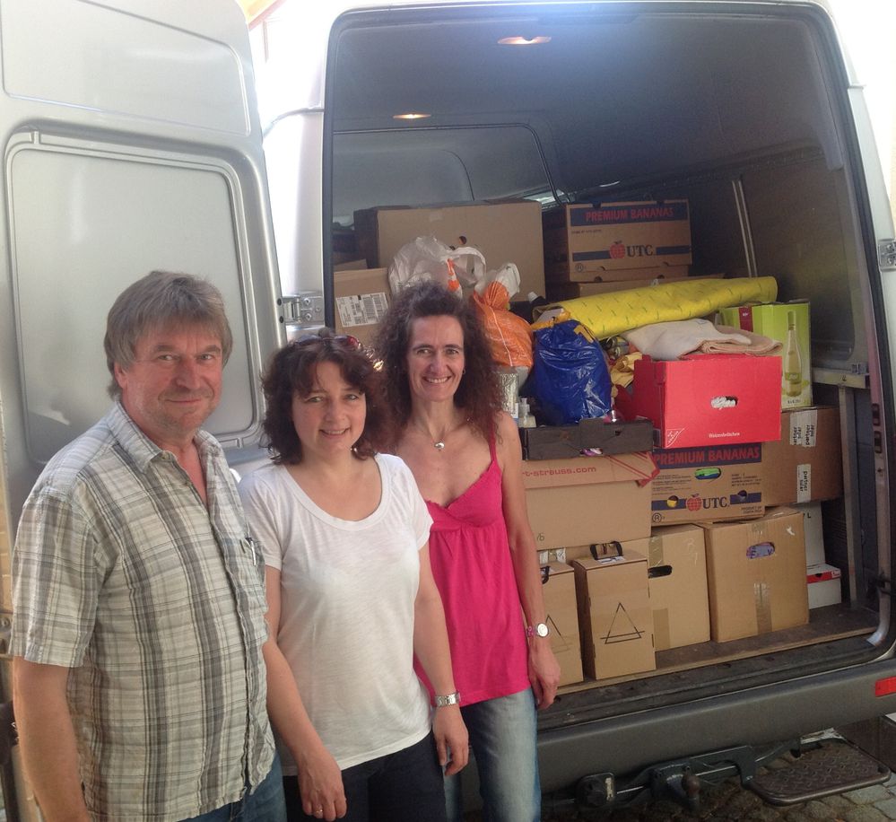 Während der Woche wurde bereits ein Teil der Kinderkleidung nach einem Hilferuf aus Passau für das dortige Kinderhilfswerk auf den Weg gebracht und am Samstag setzten sich die beiden stellvertretenden SPD-Vorsitzenden Angelika Thiel und Ruth Müller selbst ans Steuer des von Hans Ferstl zur Verfügung gestellten Transporters, um den Hilfstransport im Landkreis Deggendorf abzugeben. Rund 25 Kubikmeter Ware wurde von den beiden Frauen an verschiedenen Stationen abgeliefert und vor Ort konnten sie sich ein Bild von der Situation machen.