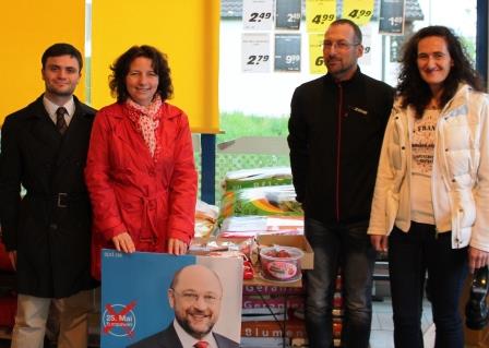 Auf seiner Infostand-Tour durch den nördlichen Landkreis Landshut besuchte der Tiefenbacher Europa-Kandidat Valerian Thielicke nach Hohenthann, Mirskofen und Rottenburg auch den Infostand der SPD Pfeffenhausen beim EDEKA-Markt.
