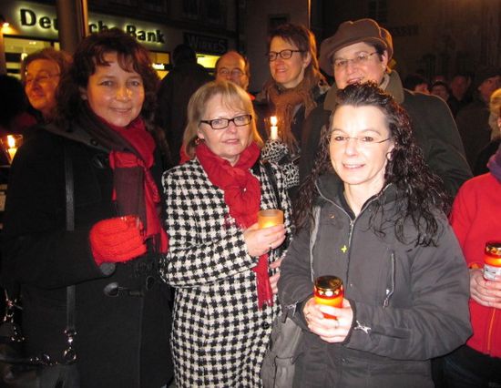 Rund 1.500 Menschen waren am Samstag abend in der Landshuter Alstadt anwesend, um ein leuchtendes "Zeichen gegen Rechts" zu setzen. Aufgerufen dazu hatte der "Runde Tisch gegen Rechts", in dem auch die SPD aus Stadt und Landkreis Landshut Mitglied ist. Viele SPD-Ortsvereine hatten sich an der Verteilung der Flyer und Plakate beteiligt und in der Presse für eine Teilnahme geworben.