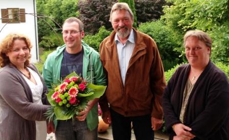 Vorsitzender Thomas Niederreiter (2. v. l.) freut sich über die Glückwünsche zur Hochzeit