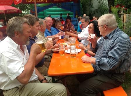 Bange Blicke zum Himmel begleiteten den Aufbau für das Torbräufest der SPD-Verantwortlichen in Pfeffenhausen, hatte doch der Wetterbericht vereinzelte Gewitter und Regenschauer gemeldet. Doch die Entscheidung der Vorsitzenden Thomas Niederreiter, Tino Melisch und Ruth Müller, im Freien aufzubauen, wurde mit gutem Sommerfestwetter den ganzen Tag über belohnt. Pünktlich zum Mittagsläuten kamen die ersten Besucher – unter ihnen Pfarrer Günter Müller – in den lauschigen Biergarten im Gasthaus „Zur Sonne“ um Steaks oder Würstchen, gegrillt von Arno Wolf und Grillmeister Christian zu verzehren. Die SPD-Mitglieder hatten zudem ein abwechslungsreiches Salat- und Kuchenbuffet vorbereitet.