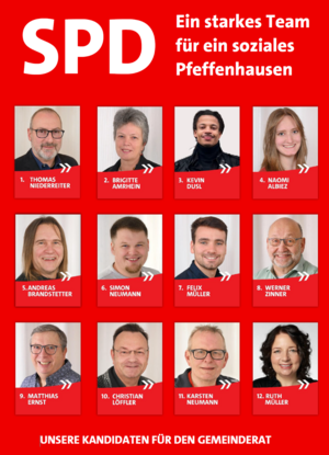 Sehr geehrte Besucher und Besucherinnen der Pfeffenhausener SPD! Mit unserer Homepage wollen wir Sie über das aktuelle Geschehen in unserer Gemeinde aber auch im Landkreis Landshut auf dem laufenden halten. Informieren Sie sich über die Aktivitäten des SPD-Ortsvereins, der Gemeinderatsfraktion und über die Arbeit der Kreisräte der SPD im Landkreis Landshut. Der SPD-Ortsverein wurde 1947 gegründet, besteht also schon seit nahezu 80 Jahren in der Gemeinde Pfeffenhausen. Demokratie lebt vom Mitmachen. Machen auch Sie mit - gestalten Sie Ihre Zukunft - mit uns. Wir freuen uns auf politisch interessierte Menschen und neue Mitglieder. Ihr Vorsitzender des SPD-Ortsvereins