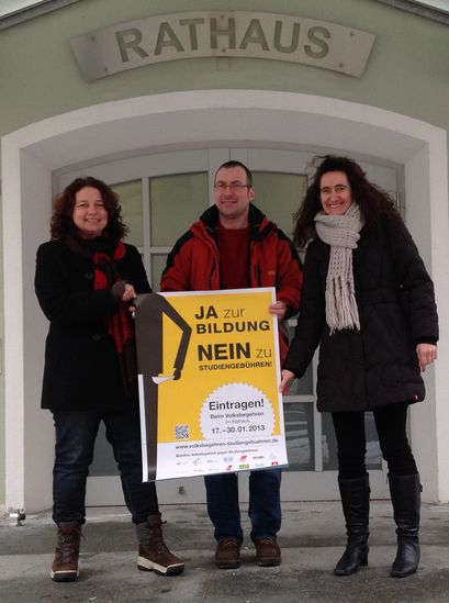Als vollen Erfolg werten die Pfeffenhausener Sozialdemokraten den Infostand zum "Volksbegehren gegen Studiengebühren". Trotz eisiger Kälte hatten die SPD-Gemeinderäte Thomas Niederreiter und Ruth Müller zusammen mit SPD-Mitglied Angelika Thiel ihren Infostand aufgebaut, um die Passanten und Einkäufer über die zusätzliche Eintragungsmöglichkeit im Pfeffenhausener Rathaus zu informieren. Auch die Gemeinderäte der Freien Wähler, Christa Popp und Martin Gebendorfer waren am Infostand präsent, um sozusagen das lokale Bündnis zu repräsentieren.